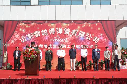 山東雷帕得彈簧有限公司2007年開始在山東淄川經濟開發(fā)區(qū)投資建廠,2009年投產,當年即實現(xiàn)銷售收入約8000萬元;2010年銷售收入超過2.5億元。公司二期工程“科技中心及氣門簧項目”主要包括新上氣門簧生產線,對現(xiàn)有穩(wěn)定桿生產線進行升級改造,新上機加工車間等項目?,F(xiàn)氣門簧生產線現(xiàn)已安裝完成、并投產,公司氣門簧項目引進了具有國際先進水平的全自動繞簧機等先進設備,可加工3—8mm的各類高品質氣門簧;穩(wěn)定桿生產線已改造完成、投產;機加工車間已投入使用;公司二期工程將新增產值過億元。公司即將進行的三期工程建設,計劃新建高品質少片板簧、汽車空氣懸架等項目,占地188畝。 整個落成及奠基儀式氣勢雄壯、絢麗多彩,在喜慶的禮炮聲中、在嘉賓的祝福聲中圓滿的落下帷幕。